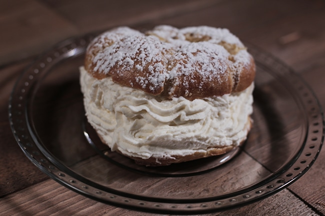Fresh cream and powdered to perfection. Might want to share with a friend as this cream puff is huge.